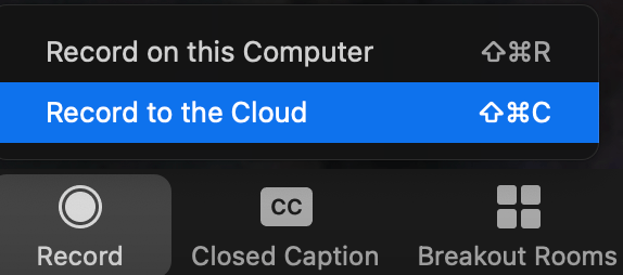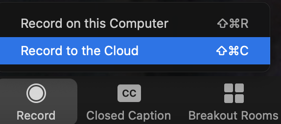 I did notice that when he clicked on the record to the cloud option my icon for recording changed to indicate that it was recording to the cloud but was in fact also recording locally. You can see the icon below.